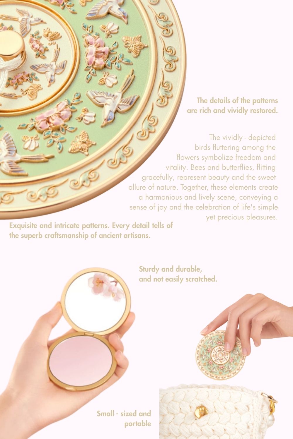 Exquisite Portable Makeup Mirror – Round with Sparrow Patterns