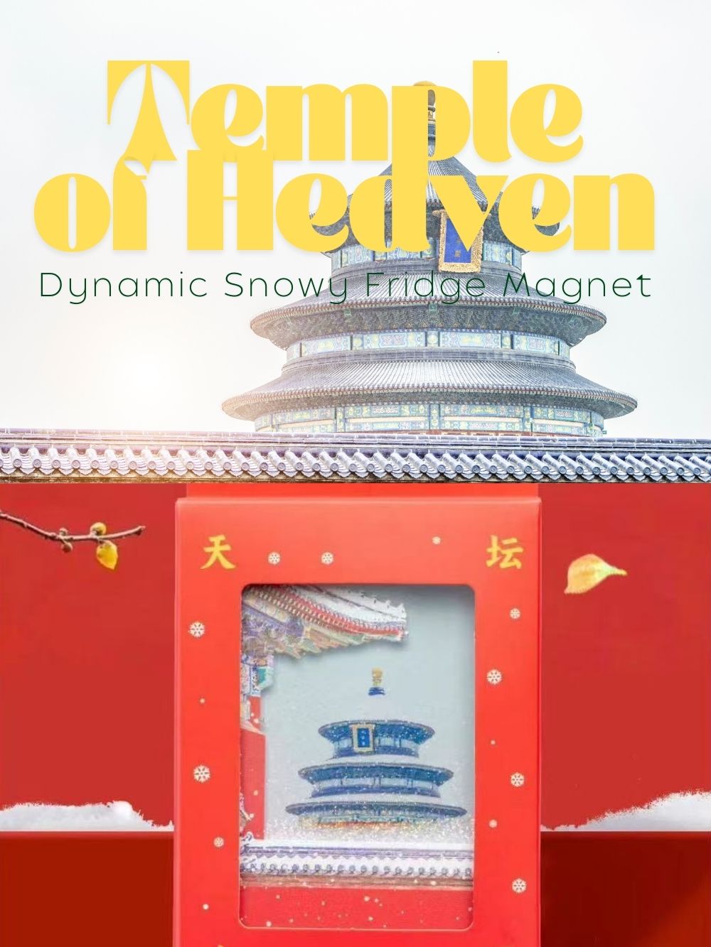 Temple of Heaven Snow – Scene Fridge Magnet – Dynamic Snowfall Effect, Auspicious Design for Cultural Decoration